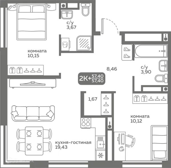 2 комн. квартира в Тюмени в ипотеку от 57 644 руб/месяц