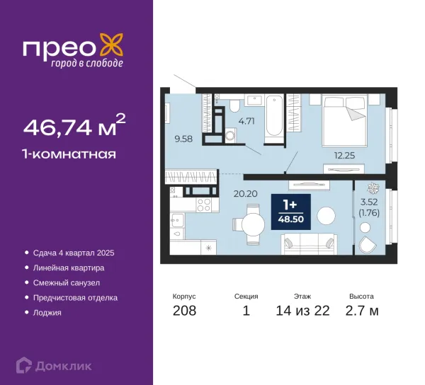 1 комн. квартира в Тюмени в ипотеку от 58 976 руб/месяц