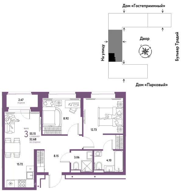 3 комн. квартира в Тюмени в ипотеку от 55 259 руб/месяц