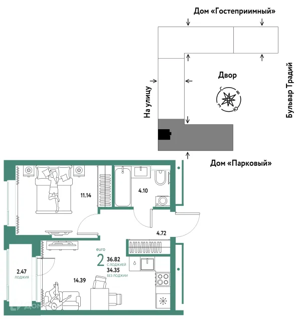 2 комн. квартира в Тюмени в ипотеку от 57 176 руб/месяц