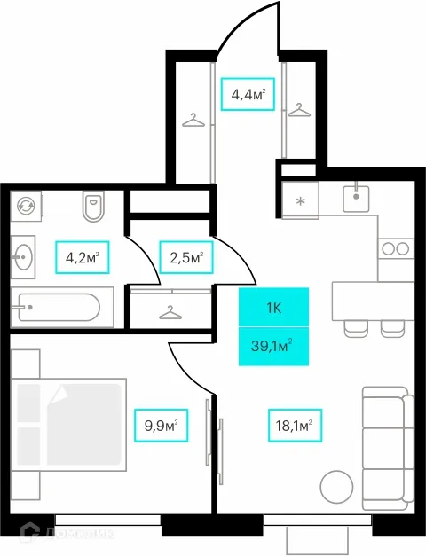 1 комн. квартира в Тюмени в ипотеку от 37 528 руб/месяц