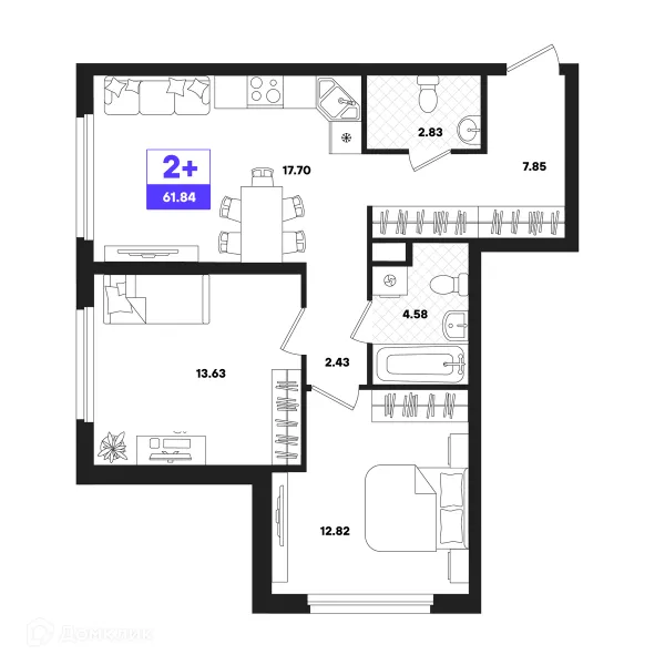 2 комн. квартира в Тюмени в ипотеку от 62 648 руб/месяц