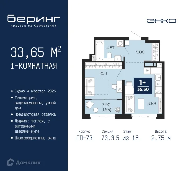 1 комн. квартира в Тюмени в ипотеку от 67 689 руб/месяц