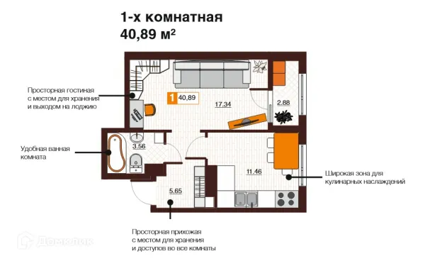 1 комн. квартира в Оренбурге в ипотеку от 33 567 руб/месяц
