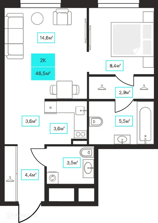 2 комн. квартира в Тюмени в ипотеку от 52 135 руб/месяц