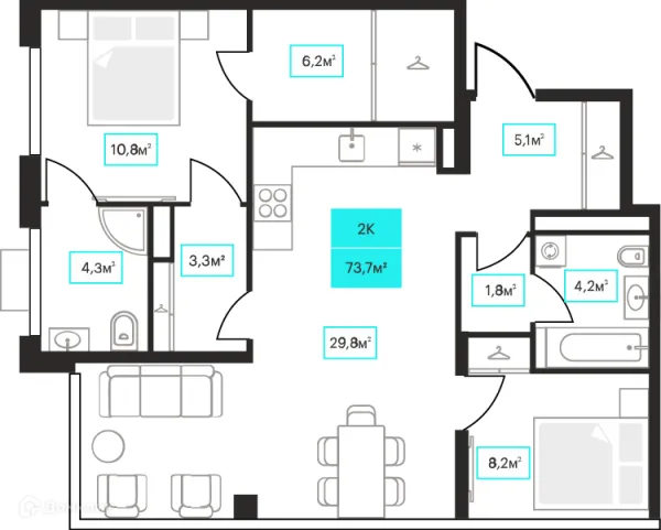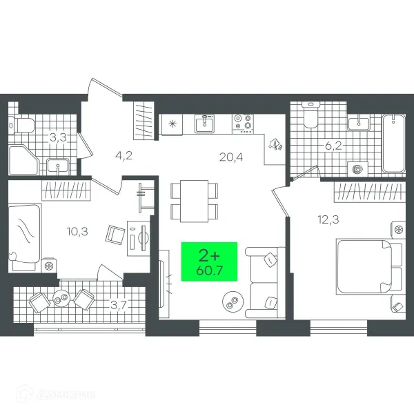 2 комн. квартира в Тюмени в ипотеку от 97 933 руб/месяц