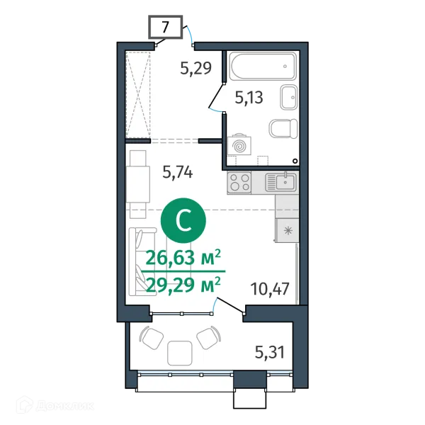 1 комн. квартира в Тюмени в ипотеку от 29 524 руб/месяц