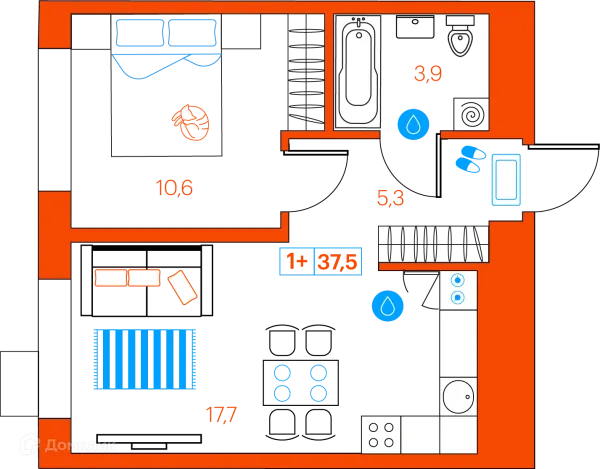 1 комн. квартира в Тюмени в ипотеку от 39 077 руб/месяц