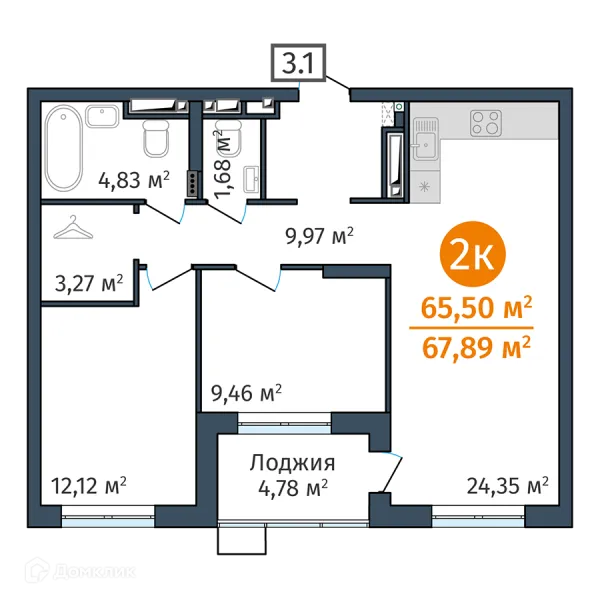 2 комн. квартира в Тюмени в ипотеку от 58 018 руб/месяц