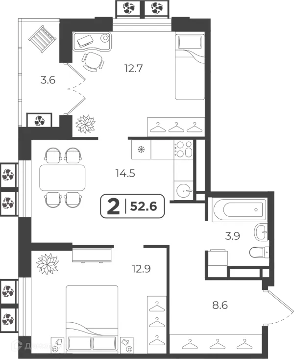 2 комн. квартира в Тюмени в ипотеку от 63 008 руб/месяц