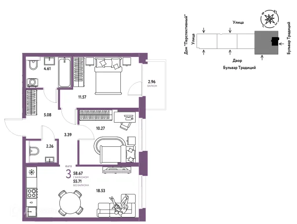 3 комн. квартира в Тюмени в ипотеку от 57 999 руб/месяц