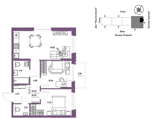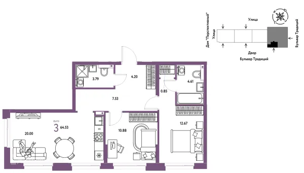 3 комн. квартира в Тюмени в ипотеку от 60 504 руб/месяц