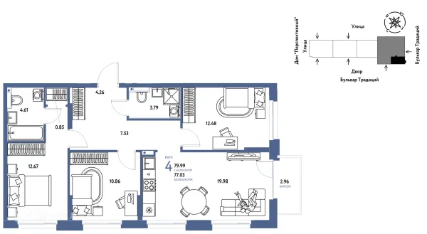 4 комн. квартира в Тюмени в ипотеку от 84 611 руб/месяц