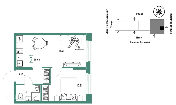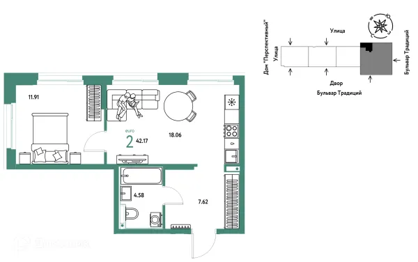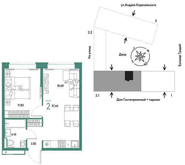 2 комн. квартира в Тюмени в ипотеку от 41 170 руб/месяц