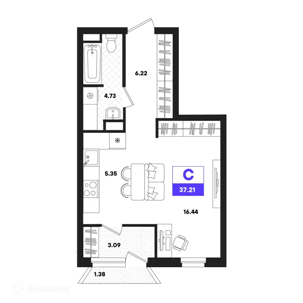 Студия квартира в Тюмени в ипотеку от 40 274 руб/месяц