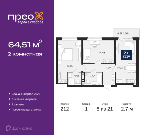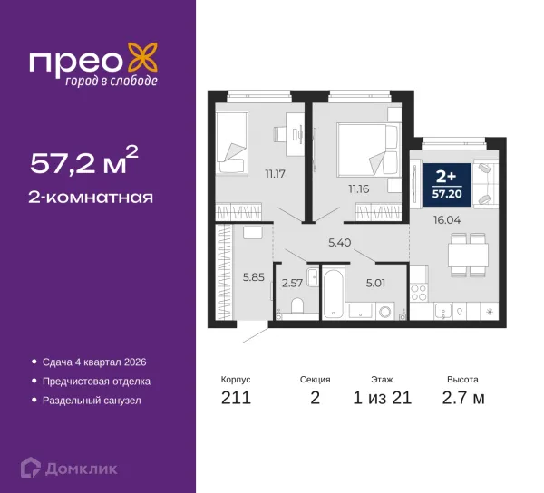 2 комн. квартира в Тюмени в ипотеку от 55 941 руб/месяц