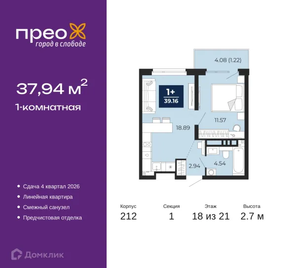 1 комн. квартира в Тюмени в ипотеку от 41 261 руб/месяц