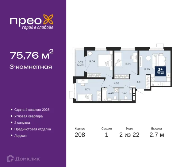 3 комн. квартира в Тюмени в ипотеку от 71 127 руб/месяц