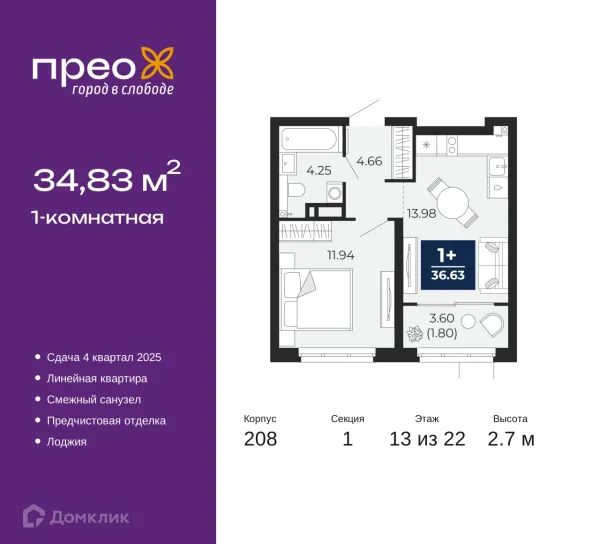 1 комн. квартира в Тюмени в ипотеку от 43 101 руб/месяц