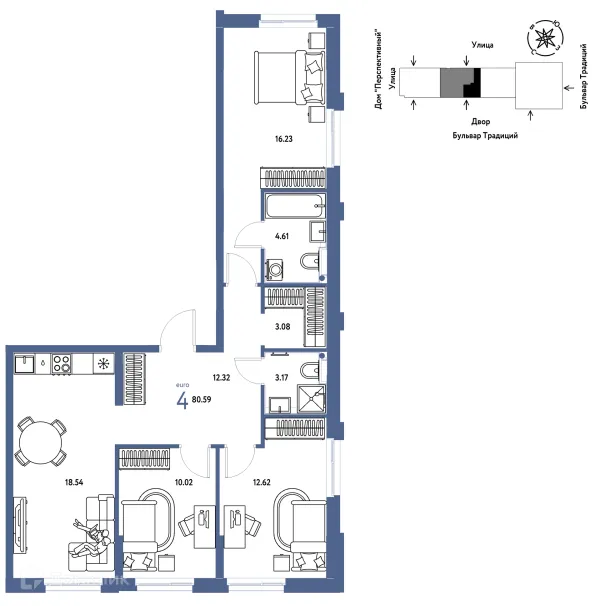 4 комн. квартира в Тюмени в ипотеку от 81 089 руб/месяц