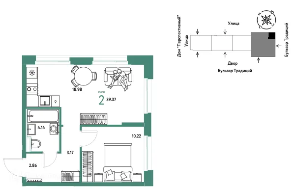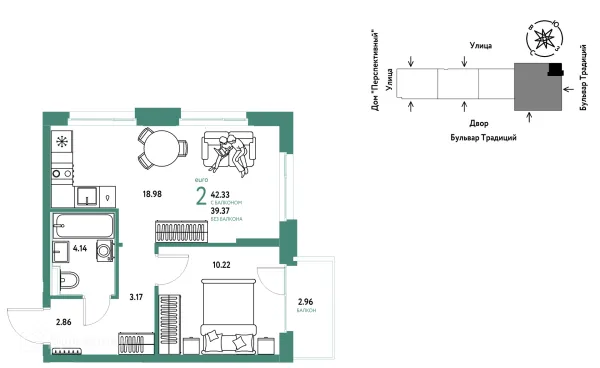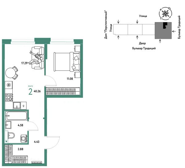 2 комн. квартира в Тюмени в ипотеку от 44 458 руб/месяц