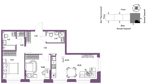 3 комн. квартира в Тюмени в ипотеку от 64 965 руб/месяц