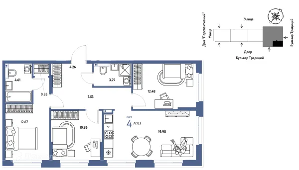 4 комн. квартира в Тюмени в ипотеку от 84 377 руб/месяц