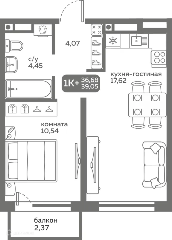 1 комн. квартира в Тюмени в ипотеку от 40 685 руб/месяц