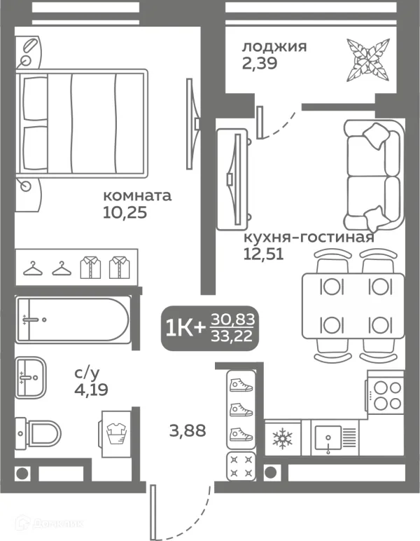1 комн. квартира в Тюмени в ипотеку от 39 677 руб/месяц