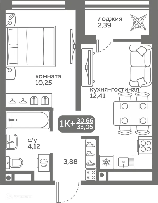 1 комн. квартира в Тюмени в ипотеку от 32 404 руб/месяц