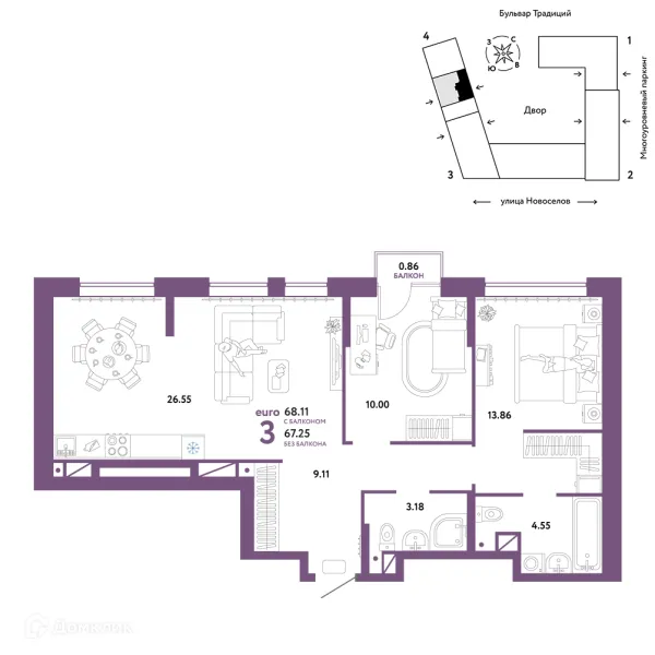3 комн. квартира в Тюмени в ипотеку от 55 572 руб/месяц