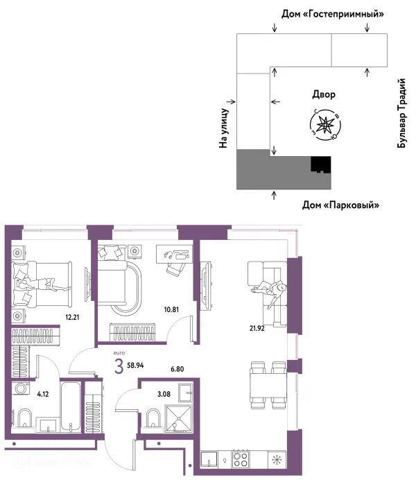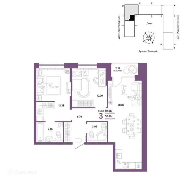 3 комн. квартира в Тюмени в ипотеку от 57 842 руб/месяц