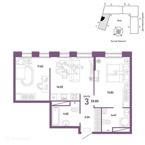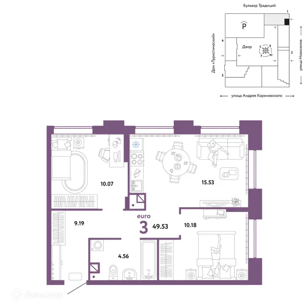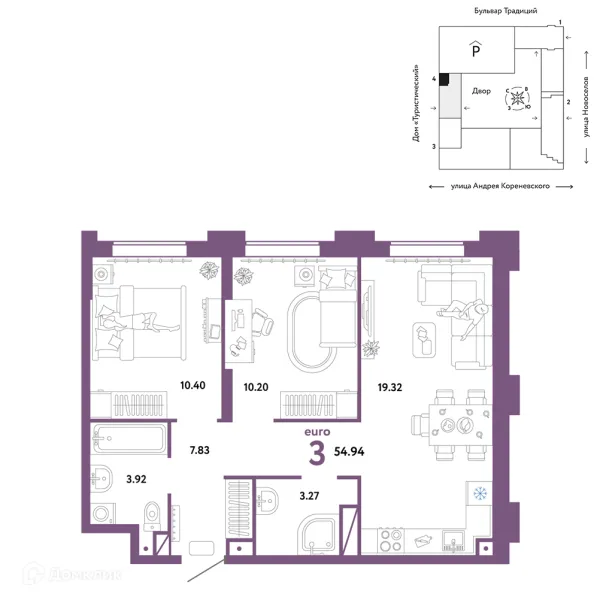 3 комн. квартира в Тюмени в ипотеку от 53 694 руб/месяц