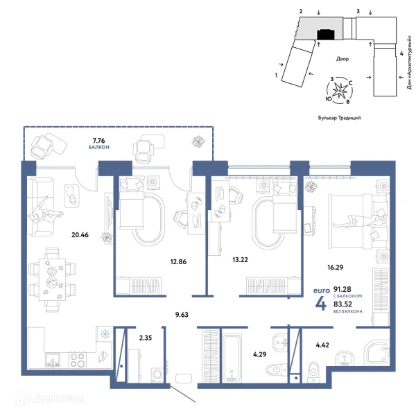 4 комн. квартира в Тюмени в ипотеку от 78 741 руб/месяц