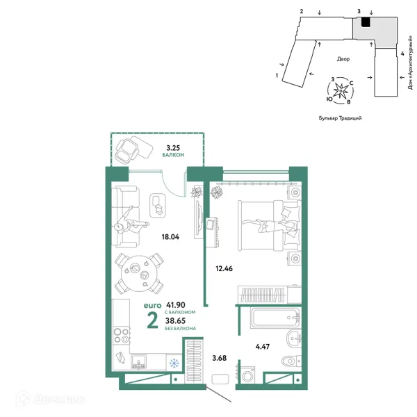 2 комн. квартира в Тюмени в ипотеку от 44 301 руб/месяц