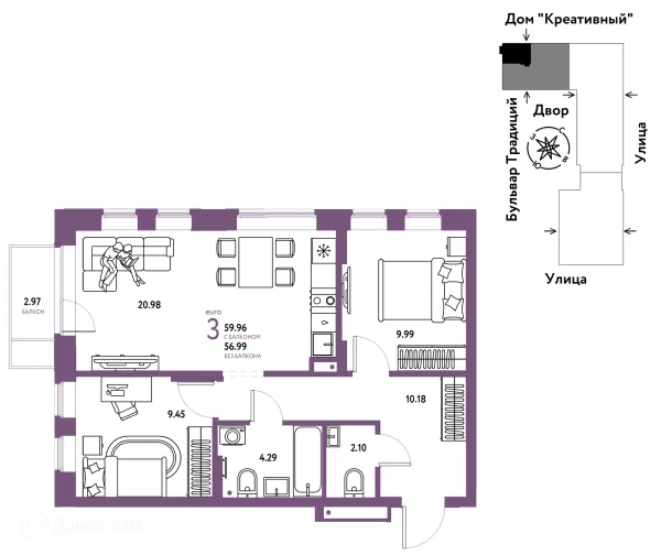 3 комн. квартира в Тюмени в ипотеку от 59 173 руб/месяц