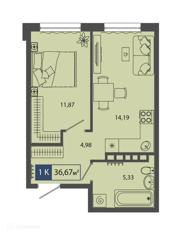 1 комн. квартира в Тюмени в ипотеку от 36 968 руб/месяц