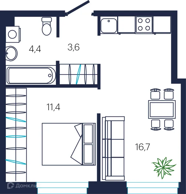 1 комн. квартира в Тюмени в ипотеку от 41 088 руб/месяц