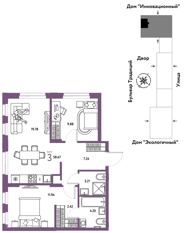 3 комн. квартира в Тюмени в ипотеку от 58 234 руб/месяц