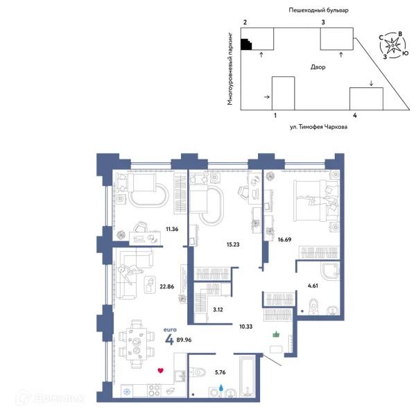 4 комн. квартира в Тюмени в ипотеку от 99 640 руб/месяц