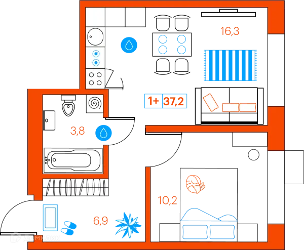 1 комн. квартира в Тюмени в ипотеку от 45 798 руб/месяц