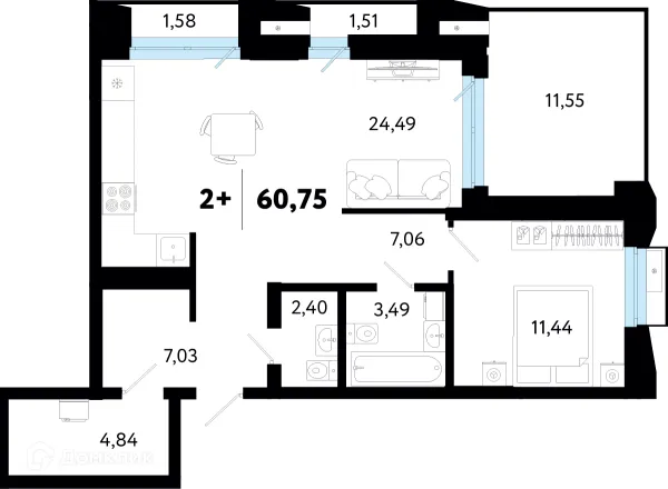 2 комн. квартира в Тюмени в ипотеку от 58 976 руб/месяц