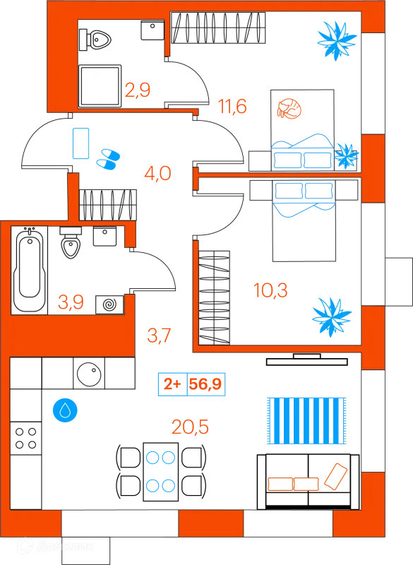 2 комн. квартира в Тюмени в ипотеку от 59 838 руб/месяц