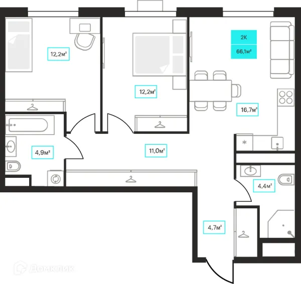 2 комн. квартира в Тюмени в ипотеку от 49 624 руб/месяц