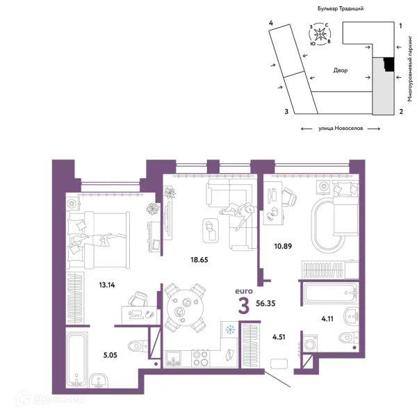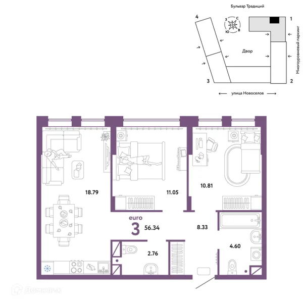 3 комн. квартира в Тюмени в ипотеку от 57 921 руб/месяц