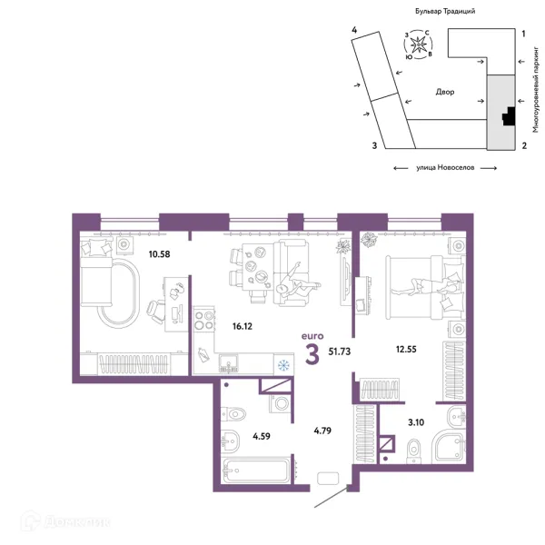 3 комн. квартира в Тюмени в ипотеку от 59 095 руб/месяц