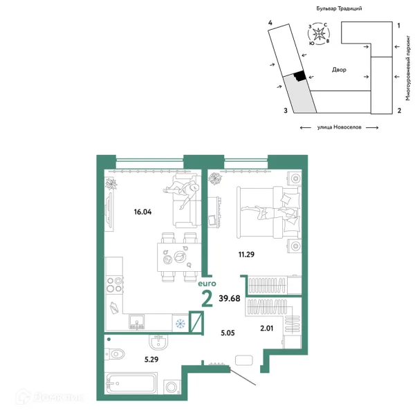 2 комн. квартира в Тюмени в ипотеку от 41 640 руб/месяц