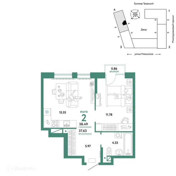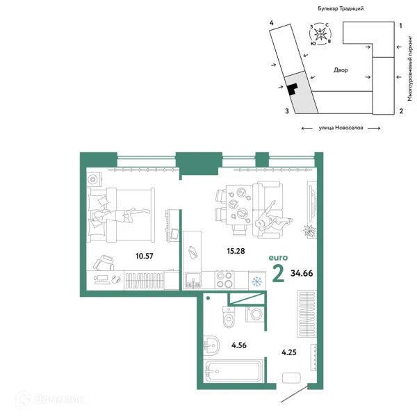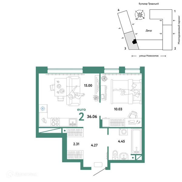 2 комн. квартира в Тюмени в ипотеку от 49 232 руб/месяц
