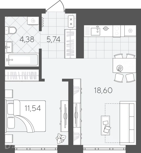 1 комн. квартира в Тюмени в ипотеку от 42 485 руб/месяц
