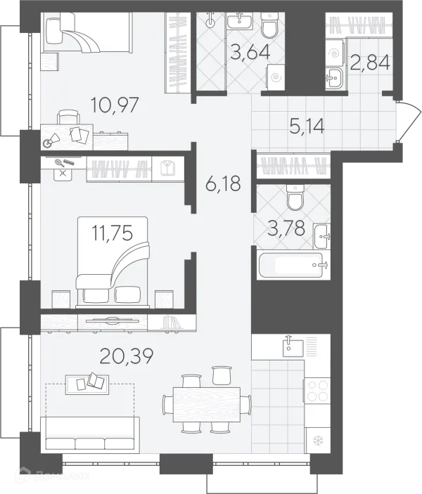 2 комн. квартира в Тюмени в ипотеку от 62 947 руб/месяц